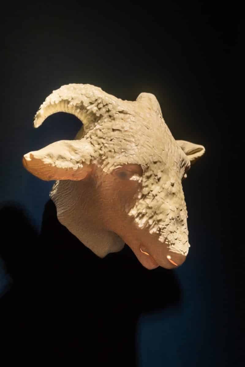 Ces figures viennent habiter le lieu et entrer en relation avec lui. L’ensemble crée un contraste entre le vivant et l’inerte, le vrai et le faux, le chaud et le froid, évoquant des figures hybrides, un rituel ou un rite de passage, entre masque initiatique, sacrifice, offrande et relique.